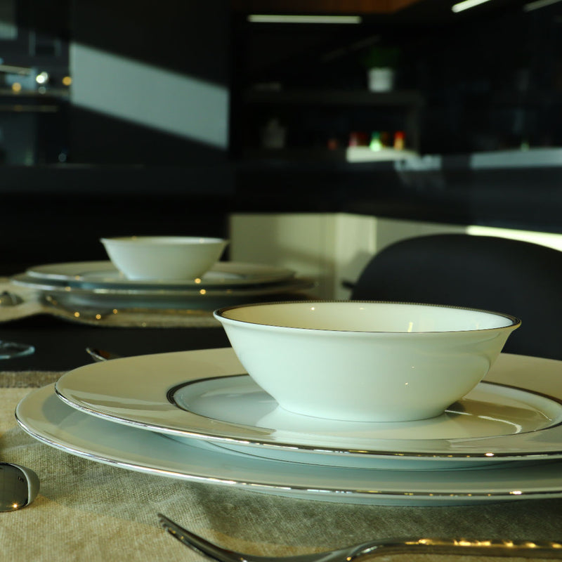 3 Round presentation plates with wide rim
