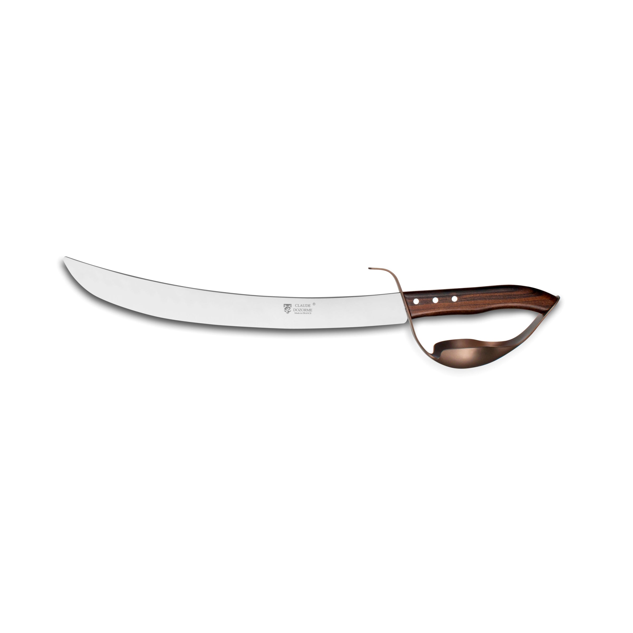 Elevate your celebrations with the Champagne Saber Bronze Guild, a masterpiece of French craftsmanship. Hand-forged in Thiers, the historic heart of French cutlery, this saber is designed for the art of sabrage—the dramatic opening of a Champagne bottle. Each saber is crafted from premium X50CrMoV15 steel, ensuring durability and elegance, and features a luxurious rosewood handle for a refined touch. Delivered with a hand strap and a guidebook on the art of sabrage, this set is perfect for connoisseurs and collectors alike.
